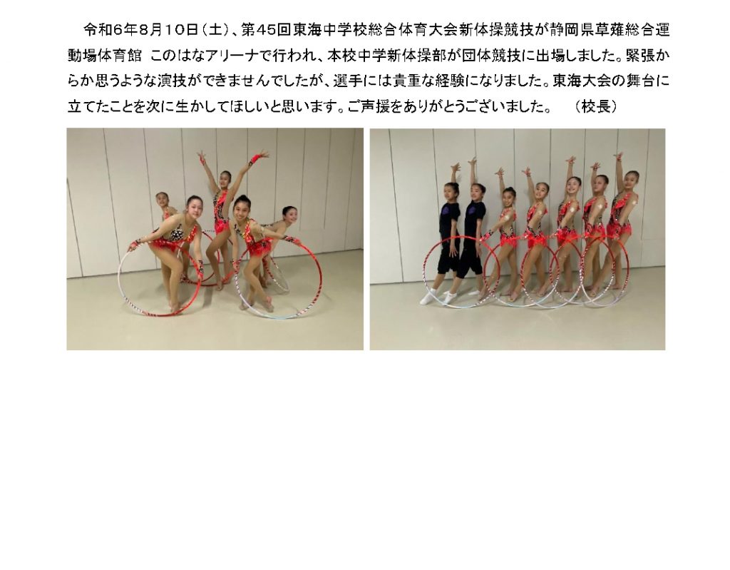 中学新体操部 東海中学総体団体競技に出場