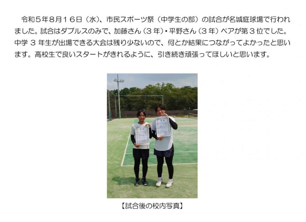 テニス部 市民スポーツ祭(中学生の部)で3位