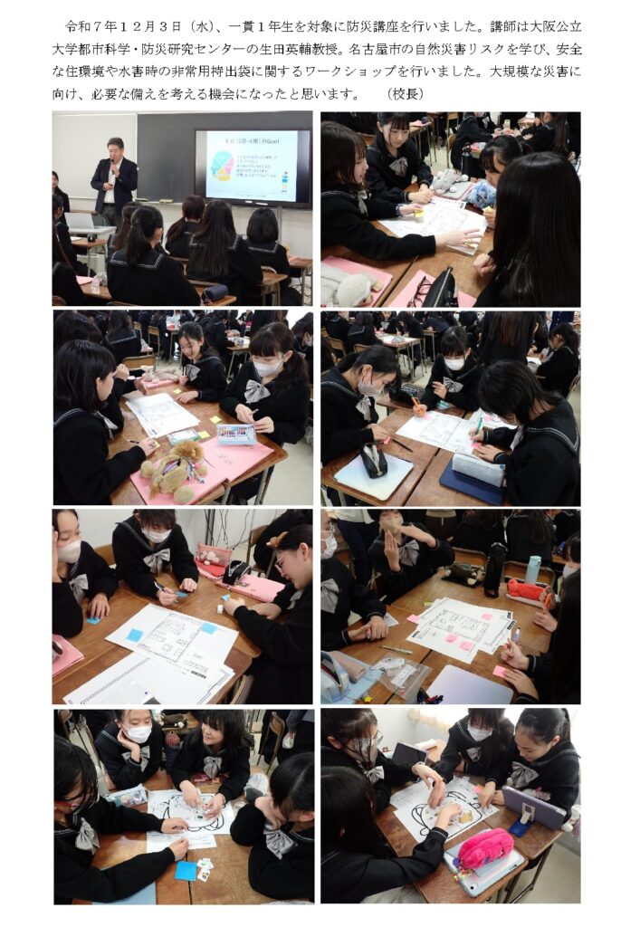 一貫1年生対象に防災講座を行いました