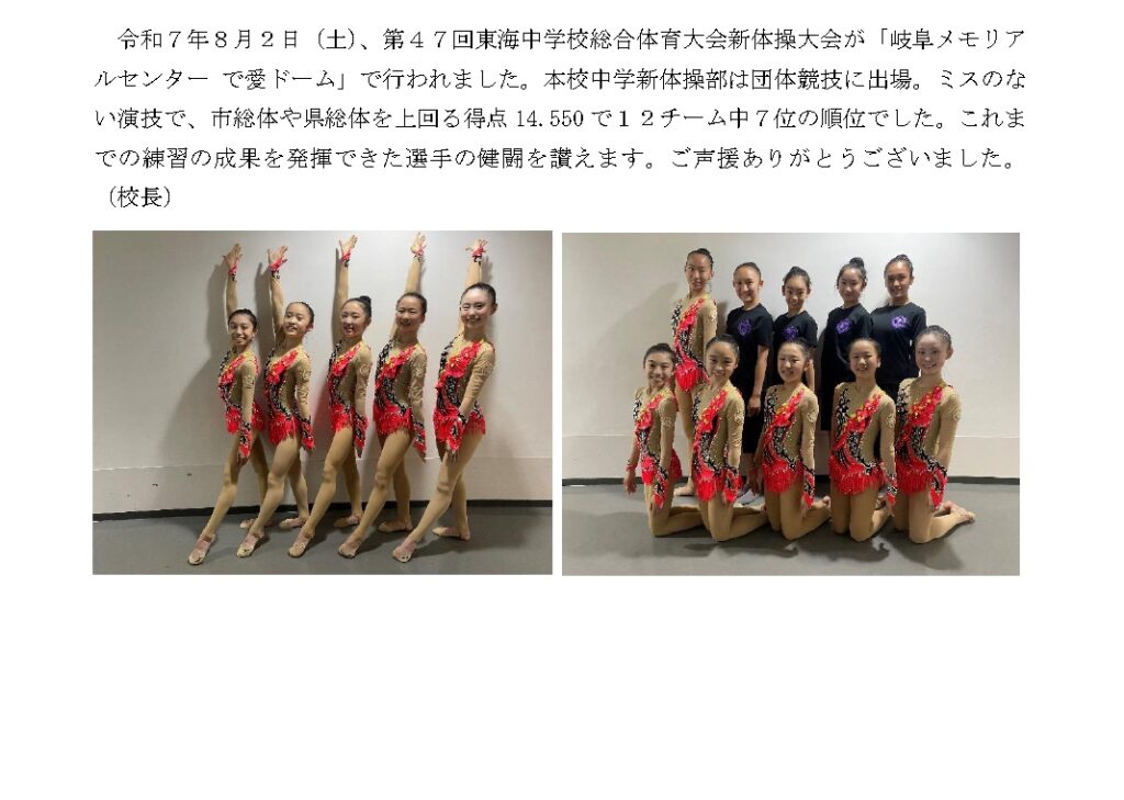 中学新体操部が岐阜県で開催された東海総体に出場しました