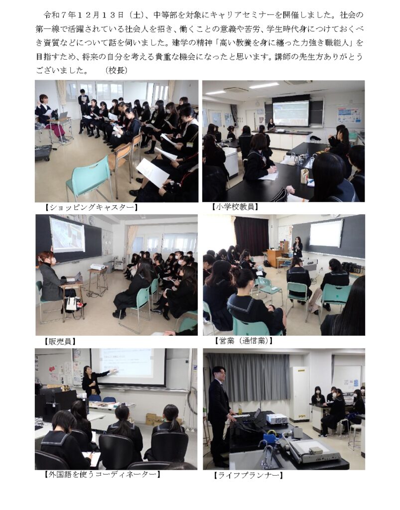 中等部でキャリアセミナーが行われました