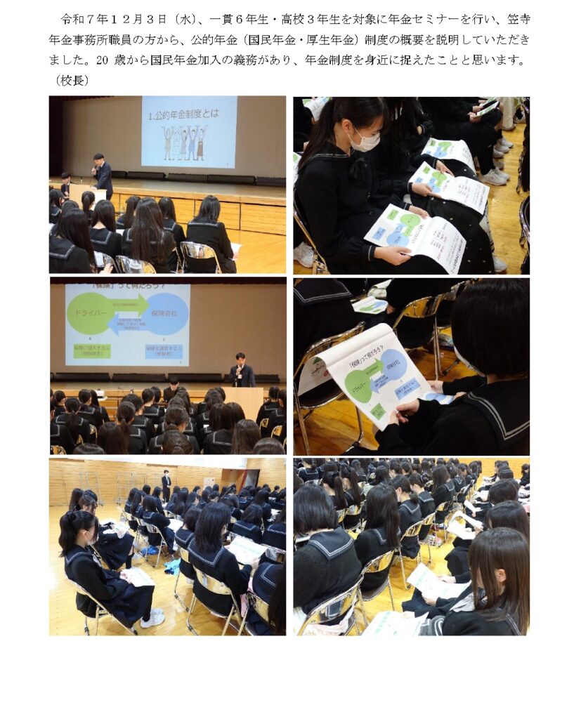一貫6年・高校3年を対象に年金セミナーを行いました