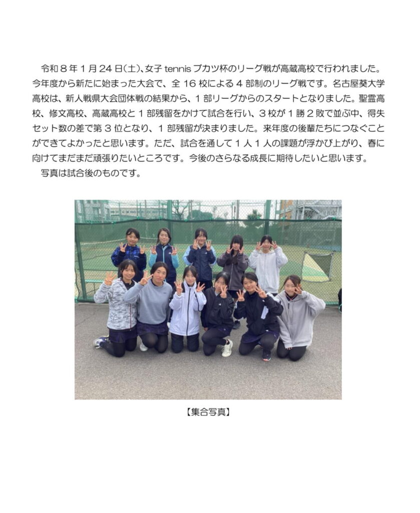 テニス部 女子tennisブカツ杯で第3位
