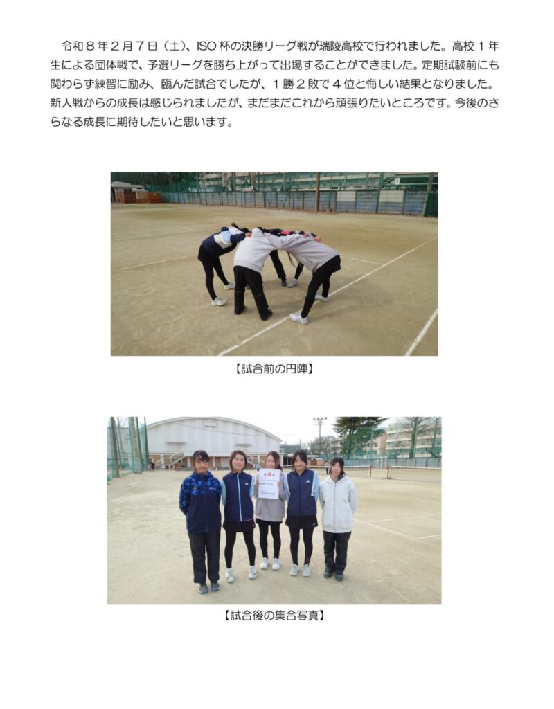 テニス部 ISO杯で第4位