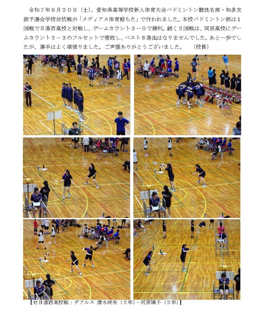 バドミントン部 高校新人戦名南・知多支部予選会学校対抗戦