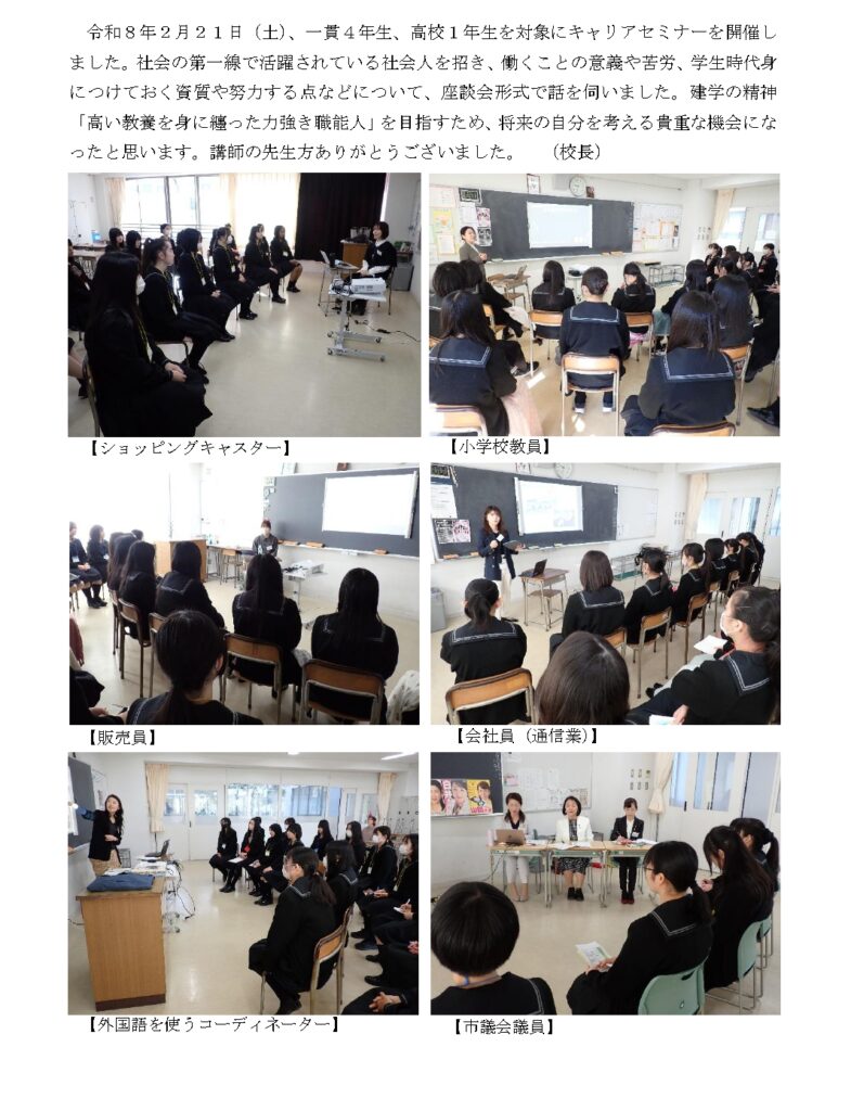 一貫4年・高校1年対象にキャリアセミナーを行いました