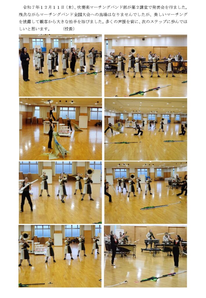 吹奏楽マーチングバンド部が発表会を行いました