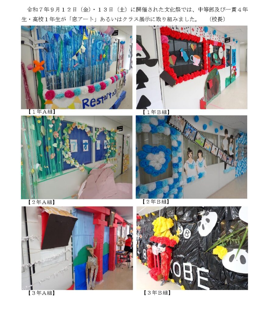 文化祭を開催しました~窓アート・クラス展示~
