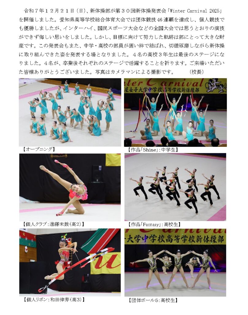 Winter Carnival 第30回新体操発表会が開催されました